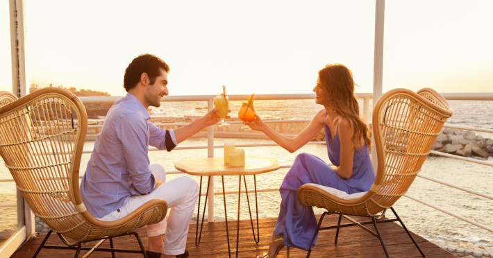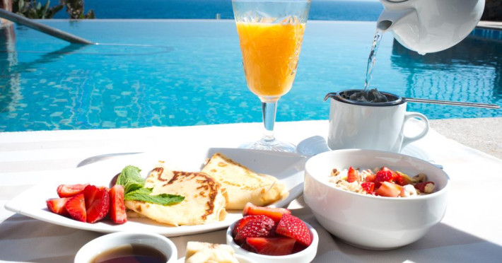 La Royal Blue Resort & Spa oaspeții au la dispoziție 4 restaurante unde pot savura mâncăruri delicioase, în stil bufet sau à la carte. Preparate din bucătăria internațională, grecească și mediteraneană așteaptă să fie degustate în fiecare zi la micul dejun, prânz și cină. Masa poate fi servită atât în interior, cît si în aer liber, pe terasă, în funcție de vreme. 4 baruri, dintre care unul la piscină, sunt disponibile cu o ofertă variată de băuturi răcoritoare și alcoolice. Pentru cei cu anumite nevoi de nutriție, Royal Blue Resort & Spa oferă meniuri pentru diete speciale.
