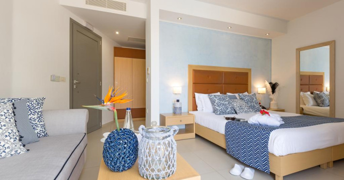 Situată în Rethymnon (Creta), această proprietate de 5 stele dispune de o zonă de plajă privată, piscină interioară și piscină exterioară cu șezlonguri și umbrele de soare. Facilitățile de la Royal Blue Resort & Spa includ sală de fitness, teren de tenis și business centre. Pentru petrecerea timpului liber oaspeții au la dispoziție activități de agrement pe timpul zilei și programe de divertisment seara. Proprietatea are, de asemenea, servicii de recepție cu program non - stop, concierge și închirieri auto. Se oferă acces gratuit la internet Wi-fi în spațiile publice. Parcarea este disponibilă la proprietate gratuit.