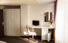Apartament cu living si dormitor, cu o suprafata de aproximativ 40 mp, dotat cu living spatos cu canapea extensibila, dormitor separat cu pat matrimonial (160/200 cm), TV, AC, frigider minibar, fierbator, baie cu dus, articole pentru toaleta, seif, uscator de par, internet. Capacitate maxima: 2 adulti + 2 copii (ambii copii sub 18 ani) sau 3 adulti si 1 copil;