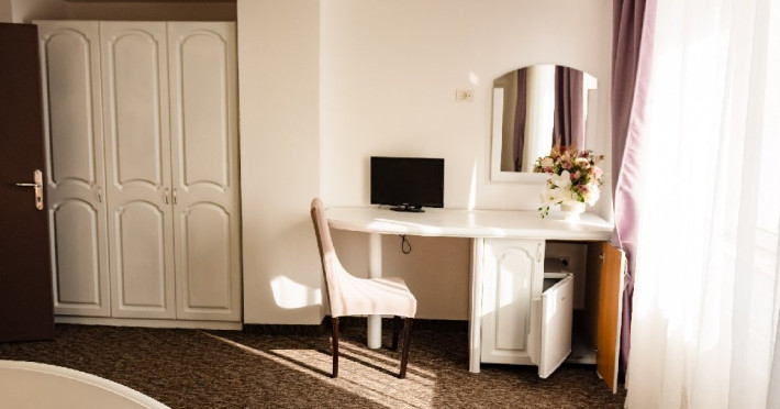 Hotelul ofera atat camera duble matrimoniale, twin si apartamente confortabile si modern amenajate. Sala de conferinta cu o capacitate de aproximativ 80 de persoane, special amenajata cu toate utilitatile necesare pentru cofnerinte/cursuri, salon de mic dejun.