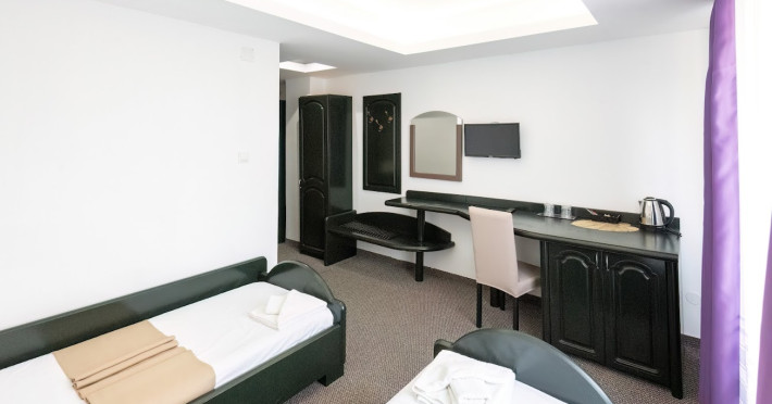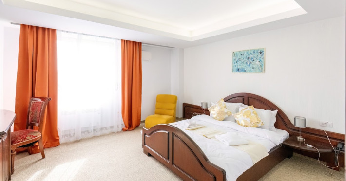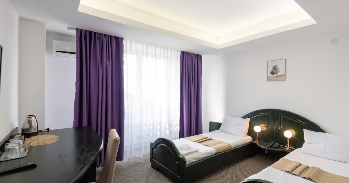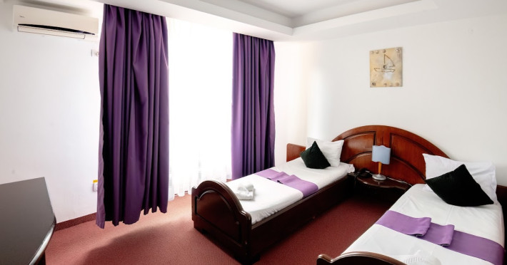 Situat intr-o zona centrala a orasului, la doar cativa pasi de atractiile principale si de transportul public, Hotelul Royal by Euxin ofera oaspetilor o experienta confortabila si relaxanta, ideala pentru oaspetii care calatoresc in interes de afaceri sau in vacanta. Hotelul dispune de camere moderne si primitoare, fiecare dotata cu facilitati de baza pentru a asigura un sejur placut: aer conditionat, Wi-Fi gratuit, seif, fierbator apa/cafea, TV cu ecran plat si minibar. Camerele sunt decorate cu gust, avand un design simplu si elegant, care adauga un plus de confort. Dimineata, oaspetii pot incepe ziua cu un mic dejun delicios, servit intr-o atmosfera relaxanta, iar la receptie, personalul prietenos este mereu disponibil pentru a oferi informatii utile sau pentru a organiza excursii in jurul orasului. Pentru oaspetii care au nevoie de un loc linistit pentru munca sau intalniri, hotelul pune la dispozitie o mica sala de conferinte si un business corner, iar daca vrei sa te relaxezi dupa o zi activa, zona de lounge este locul perfect. Fie ca esti in oras pentru o scurta escapada sau pentru o vizita de afaceri, Hotelul Royal by Euxin iti garanteaza oaspetilor un sejur confortabil, in inima orasului, aproape de tot ce ai nevoie. Incepand cu 1 Iunie 2025, fiecare turist va beneficia de acces gratuit la plaja privata de la Marea Neagra, unde punem la dispozitie sezlonguri, precum si apa si cafea din partea casei.