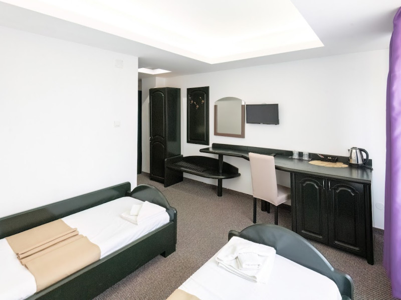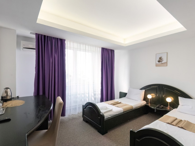 Situat intr-o zona centrala a orasului, la doar cativa pasi de atractiile principale si de transportul public, Hotelul Royal by Euxin ofera oaspetilor o experienta confortabila si relaxanta, ideala pentru oaspetii care calatoresc in interes de afaceri sau in vacanta. Hotelul dispune de camere moderne si primitoare, fiecare dotata cu facilitati de baza pentru a asigura un sejur placut: aer conditionat, Wi-Fi gratuit, seif, fierbator apa/cafea, TV cu ecran plat si minibar. Camerele sunt decorate cu gust, avand un design simplu si elegant, care adauga un plus de confort. Dimineata, oaspetii pot incepe ziua cu un mic dejun delicios, servit intr-o atmosfera relaxanta, iar la receptie, personalul prietenos este mereu disponibil pentru a oferi informatii utile sau pentru a organiza excursii in jurul orasului. Pentru oaspetii care au nevoie de un loc linistit pentru munca sau intalniri, hotelul pune la dispozitie o mica sala de conferinte si un business corner, iar daca vrei sa te relaxezi dupa o zi activa, zona de lounge este locul perfect. Fie ca esti in oras pentru o scurta escapada sau pentru o vizita de afaceri, Hotelul Royal by Euxin iti garanteaza oaspetilor un sejur confortabil, in inima orasului, aproape de tot ce ai nevoie. Incepand cu 1 Iunie 2025, fiecare turist va beneficia de acces gratuit la plaja privata de la Marea Neagra, unde punem la dispozitie sezlonguri, precum si apa si cafea din partea casei.Datorita dinamicitatii domeniului disponibilitatea ofertelor se modifica de la un moment la altul. De aceea ofertele sunt valabile in limita locurilor disponibile. Agentia nu este responsabila pentru eventualele neconcordante care pot aparea intre informatiile privind tarifele si alte detalii din site si informatiile primite in agentie. In aceste cazuri vor avea prioritate, intotdeauna, informatiile primite in agentie.