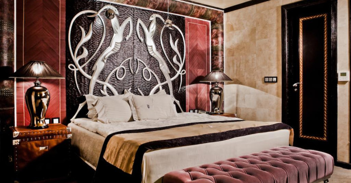 Hotelul oferă cazare în camere duble, studiouri, apartamente, apartamente luxury și suite VIP. Toate tipurile de cameră dispun de telefon, aer condiționat, mochetă, zonă de relaxare, acces la internet Wi-Fi (gratuit), minibar (contra cost), TV, birou, balcon, baie cu duș sau cadă, bideu, uscător de păr, articole de toaletă gratuite, halat de baie, papuci de casă, seif (gratuit), aparat de cafea. Apartamentele Safari, Hollywood, Country, Zodiac dispun de jacuzzi, baie de aburi și saună. La cerere, se oferă fier și masă de călcat. Se oferă pătuț pentru copii, la cerere.