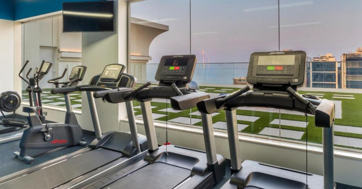 O sală de fitness cu echipamente necesare pentru o gamă variată de exerciții fizice este la dispoziția celor interesați.