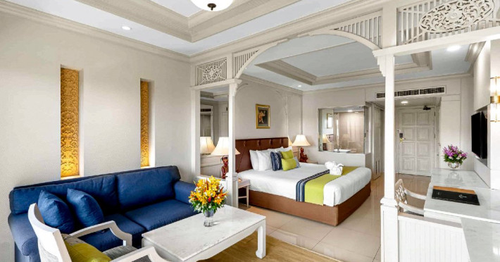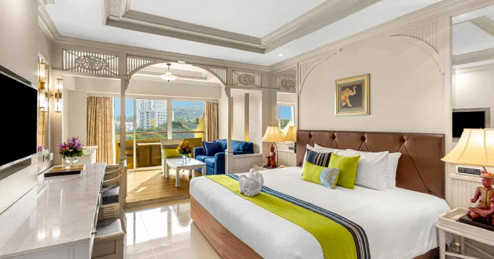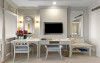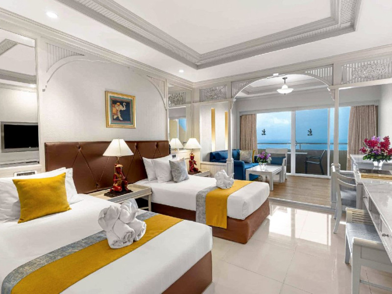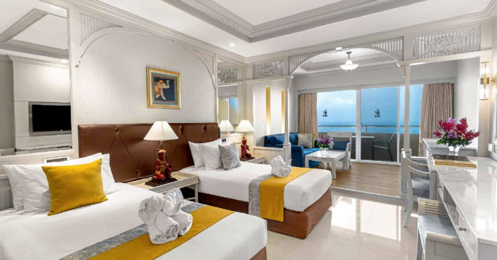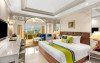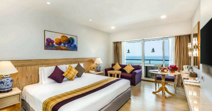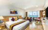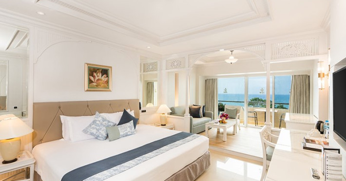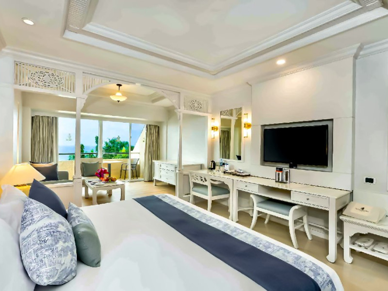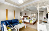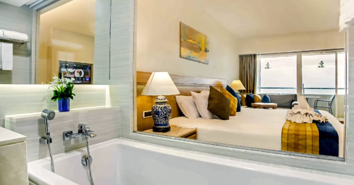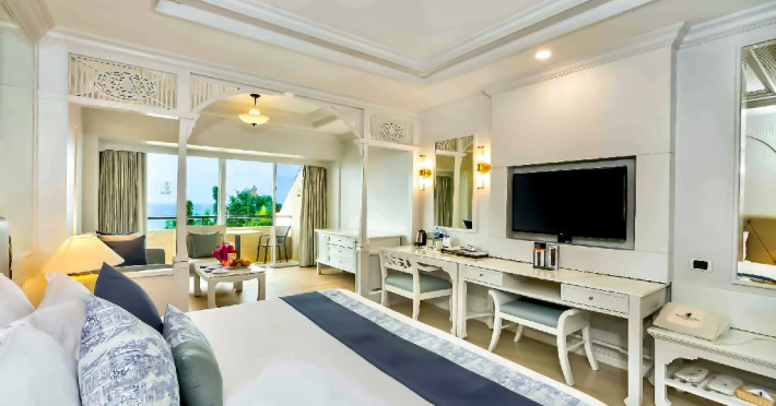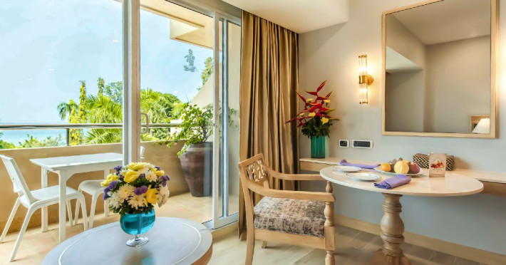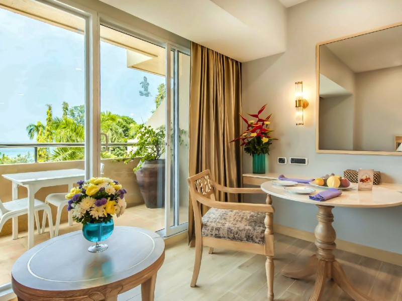 - Suite Plus Sea View (aprox. 36 m2): o incapere cu zona de zi, baie echipata, aer conditionat, TV satelit, facilitati pentru cafea si ceai, seif, balcon sau terasa, cu vedere la mare