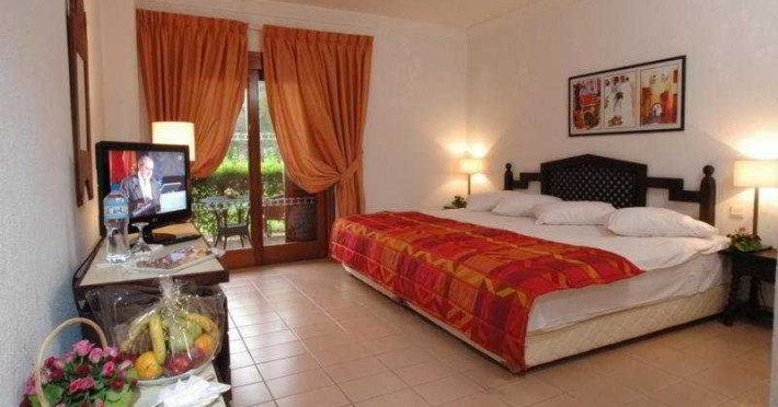 The hotel is located 14 km away from Marrakech-Menara Airport. It is perfectly situated 10 minutes drive from the city centre of Marrakech. Located on a 6-hectare garden, the hotel comprises 212 rooms within 18 buildings. Among the facilities on offer are a buffet restaurant, a bar lounge and A la carte restaurant. Renovated in 2009, the air conditioned club resort welcomes guests in a lobby with 24-hour reception and check-out service, hotel safe and currency exchange facilities. A hairdressing salon, auditorium, and a disco are also at guests disposal. Each room comes equipped with 2 single beds or a queen-size bed. The rooms also feature an en suite bathroom, cable TV and iron. A safety deposit box is available upon request. Each room provides a private balcony or terrace.The hotel is located 14 km away from Marrakech-Menara Airport. It is perfectly situated 10 minutes drive from the city centre of Marrakech. Located on a 6-hectare garden, the hotel comprises 212 rooms within 18 buildings. Among the facilities on offer are a buffet restaurant, a bar lounge and A la carte restaurant. Renovated in 2009, the air conditioned club resort welcomes guests in a lobby with 24-hour reception and check-out service, hotel safe and currency exchange facilities. A hairdressing salon, auditorium, and a disco are also at guests disposal. Each room comes equipped with 2 single beds or a queen-size bed. The rooms also feature an en suite bathroom, cable TV and iron. A safety deposit box is available upon request. Each room provides a private balcony or terrace.
