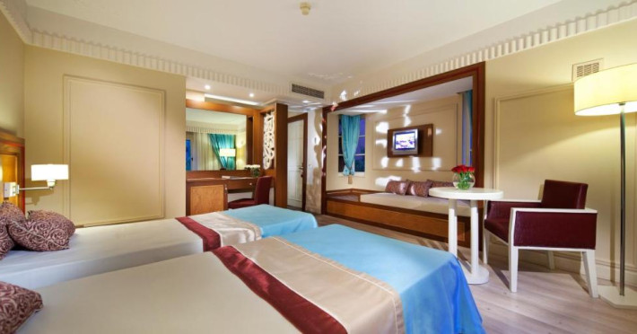 Locație Stațiune pe malul mării, plajă privată cu pietriș-nisip (500 m), Steagul Albastru (se recomandă încălțăminte specială pentru plajă). Ponton de aterizare pe plajă. Certificări: 1 ponton de aterizare pentru sporturi nautice. - Turism Sigur - Steagul Albastru Facilități Hotel Restaurante și Baruri Piscine (interior și exterior) Plajă privată Spa Activități pentru copii Sporturi Divertisment Facilități Camere (doar camere standard) Camere standard (28-30 m²): 1 pat matrimonial sau 2 paturi duble, vedere la grădină. TV LCD 140”, telefon, minibar, AC, podea laminată, baie (duș, WC), șlapi, uscător de păr, seif electronic, radio pe TV. Alte Informații Aeroport: Aeroportul Antalya (70 km) Zone rezidențiale apropiate: Tekirova (2 km), Çamyuva (10 km), Kemer (18 km), Antalya (60 km) Spital: Kemer (18 km) Locuri Istorice: Phaselis (8 km), Olympos (35 km) Centru Comercial: Tekirova (2 km) Zonă de Golf: Belek (105 km) Centru de Scufundări: Trei Insule (3 km) Schi: Muntele Tahtalı (8 km), Saklıkent (102 km) Plimbări cu Caii: Çamyuva (10 km) Rafting: Canionul Köprülü (115 km) Transport: Microbuze locale la fiecare 15 minute către Phaselis, Çamyuva, Kemer și Antalya (contra cost) Alte Informații: Carduri de credit acceptate (Visa, Master), Nu se acceptă animale de companie, Tensiune electrică: 220, Accesibilitate pentru persoanele cu dizabilități. Piscine & Plajă Piscină exterioară cu apă dulce (716 m²) Piscină interioară cu apă dulce (50 m²) Piscină pentru copii în aer liber (100 m²) Piscină Relaxare cu apă dulce (220 m²) Piscină Euphoria (doar pentru oaspeții de la vile) cu apă dulce Aquapark (pentru adulți) cu 6 tobogane cu apă Aquapark pentru copii cu 6 tobogane cu apă Plajă privată cu șezlonguri și prosoape incluse Baruri Lobby Bar (24 de ore) Pool Bar (10:00-00:00) Beach Bar (10:00-18:00) Aqua Bar (10:00-00:00) Snack Bar (10:00-18:00) Cafe Bar (11:00-18:00) Jazz Bar (22:00-02:00, anumite zile cu rezervare) Restaurante Mic dejun, prânz, cină, gustare târzie în format bufet deschis Restaurant cu specific internațional Restaurant Snack cu preparate la carte Diverse baruri și restaurante cu program și meniuri speciale, unele cu rezervare și cost suplimentar Divertisment Activități de zi: activități în aer liber cu antrenori sportivi profesioniști Evenimente seară: petreceri tematice, spectacole de dans și acrobații, programe muzicale live Divertisment pentru copii: Mini club, jocuri diverse, mini-cinema zilnic, spectacole pentru copii și mini-disco seara Concept Ultra All Inclusive Inclus în preț: Toate mesele și gustările Băuturi nealcoolice și alcoolice locale și unele importate Reumplerea zilnică a minibarului Internet wireless nelimitat în întreaga zonă a hotelului Acces gratuit la aquapark pentru adulți și copii Activități de divertisment și facilități pentru copii Șezlonguri, umbrele și prosoape de plajă Cu Cost Suplimentar: Restaurante A'la Carte, sucuri de fructe proaspăt stoarse, vin de calitate specială, șampanie și unele băuturi alcoolice importate Servicii de masaj, centrul de înfrumusețare, room service, sporturi acvatice motorizate, telefon, fax și copiere, servicii de spălătorie, babysitting, servicii medicaleInfo