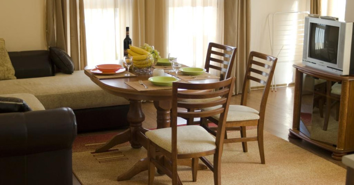 Studiourile si apartamentele ofera canapea extensibila, aer conditionat, balcon, internet wi-fi (contra cost), chicineta dotata cu tacamuri si ustensile de bucatarie, fierbator electric, prajitor de paine, plita electrica, aspirator, frigider, podea acoperita cu parchet si gresie, baie cu dus, set cosmetice,uscator pentru par.
