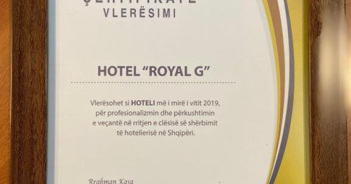 Royal G Hotel and Spa se află pe malul mării in Durrës și oferă cazare de 5 stele, o piscină in aer liber, un lounge comun și un bar. Acest hotel se află la cațiva pași de Plaja din Durrës și la 37 km de Piața Skanderbeg și pune la dispoziție o zonă de plajă privată. Acest hotel include o piscină interioară, o recepție nonstop și WiFi gratuit deschis in proprietate.