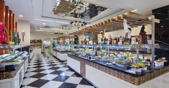 Facilitati hotel: Hotelul pune la dispozitia turistilor: restaurante a la carte, cafenele, baruri, patiserie, mai multe piscine cu sezlonguri si umbrele, aqua park, zona de plaja privata, sala de fitness, divertisment de seara, club pentru copii, loc de joaca, spa si centru wellness, masaj, baie turceasca, sauna, volei pe plaja, fotbal pe plaja, gimnastica acvatica, biliard, tenis de masa, darts, si boccia.