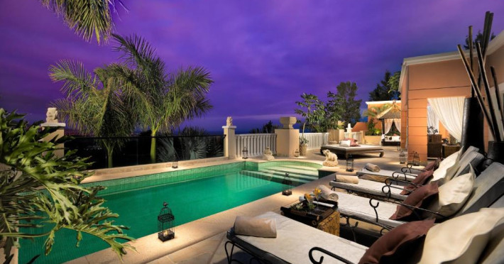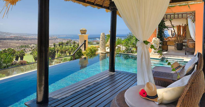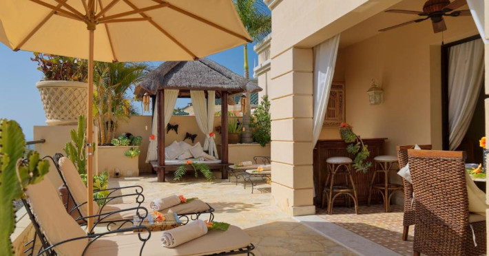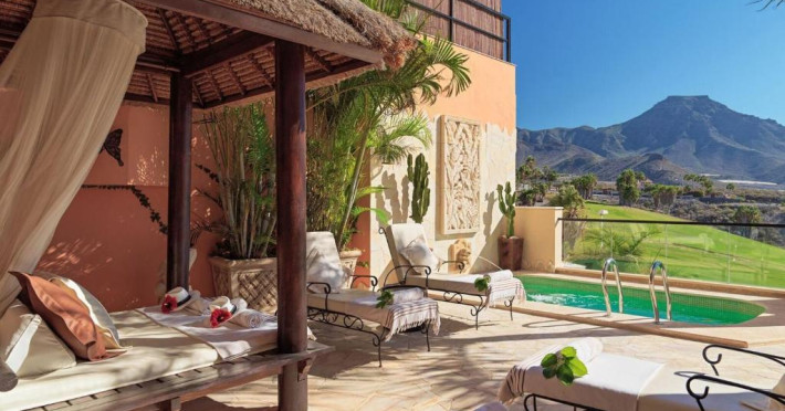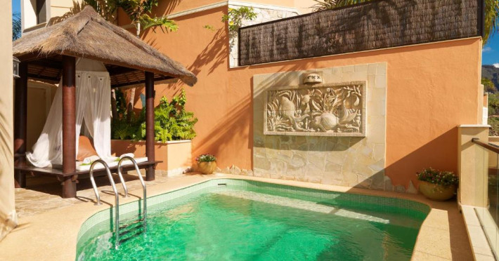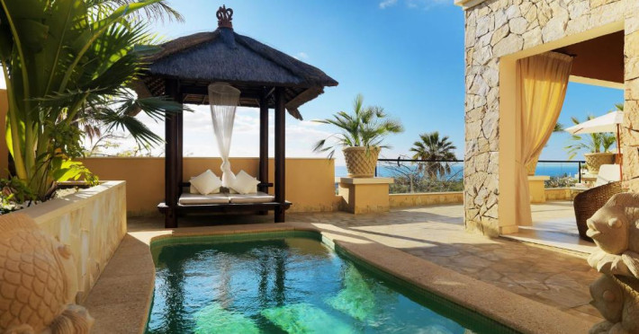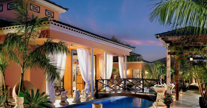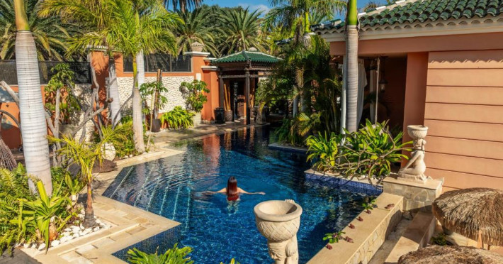 cest complex de 5 stele oferă vile de lux in stil balinez, cu piscine incălzite private. Complexul Royal Garden Villas este inconjurată de grădini si oferă o sală de fitness, un centru spa si vedere impresionantă la ocean. Toate unitățile de cazare sunt spațioase si decorate individual, fiecare avand un decor elegant si mobilier din lemn. Toate vilele au terasă, TV cu ecran plat de 40 inch, DVD player și o bucătărie bine utilată. Fiecare are un duș cu hidromasaj și cadă. Restaurantul Jardín al complexului Royal Garden oferă mancăruri à la carte și o selecție de preparate spaniole, intr-un cadru elegant, decorat cu zăbrele de lemn cu un model complex. Pub-ul Tucán Tucán serveste o varietate de cockteiluri si gustări ușoare. Centrul spa Golden Pond are un design in stil oriental si include o piscină interioară si băi turcești. De asemenea, oferă o cadă cu hidromasaj, o fantană de gheață si diverse tratamente de infrumusețare. Există, de asemenea, un teren de squash și o sală de fitness. Royal Garden vă poate facilita inchirierea unui iaht sau obținerea unei green fee pentru terenurile de golf din zonă. De asemenea, poate organiza diverse excursii, inclusiv pentru vizitarea orașului Puerto de la Cruz si a insulei La Gomera.