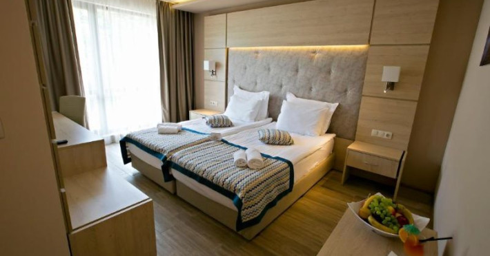 Royal Grand Hotel se află amplasat pe malul plajei de pe litoralul Mării Negre, în pitorescul oraș Kavarna. Cu o arhitectură modernă și mobilier elegant, hotelul este conceput conform celor mai înalte standarde și tendințe în design, pentru a satisface chiar și cele mai exigente preferințe ale oaspeților. Beneficiind de o plajă privată cu nisip auriu, apă cristalină și o panoramă spectaculoasă asupra mării, hotelul oferă o experiență de relaxare și confort de neuitat.Facilități hotel
