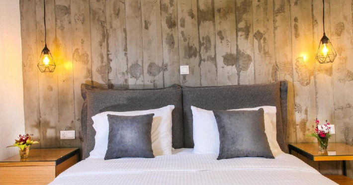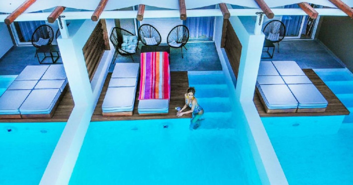 4 X Suite cu piscina privata (40 m2) - dormitor cu pat matrimonial si living cu canapea extensibila.