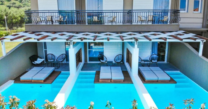 2 X Grand Suite cu piscina incalzita (80 m2) - 2 dormitoare & living cu canapea extensibila.
