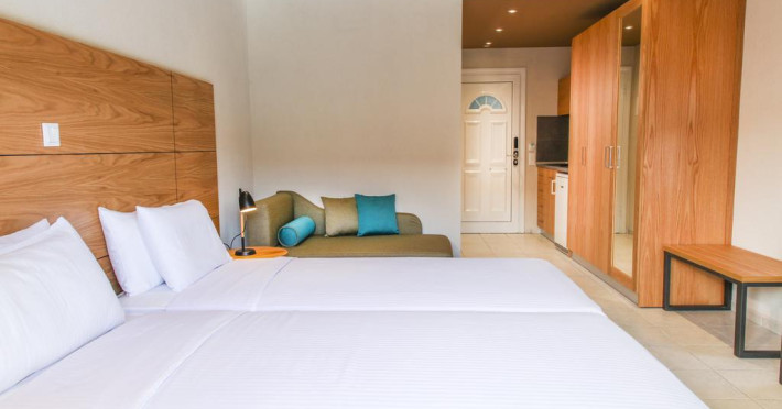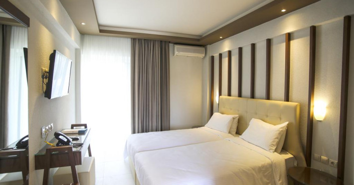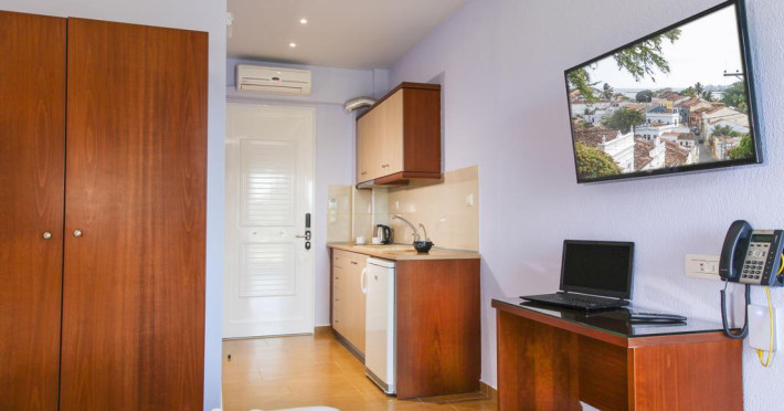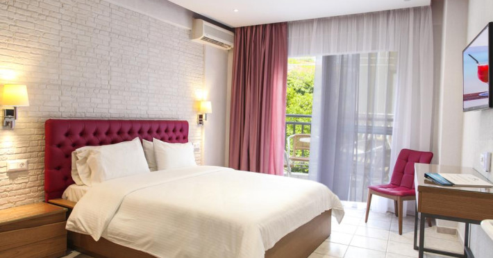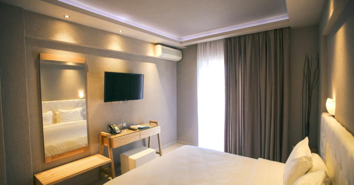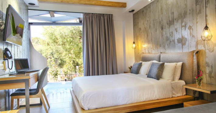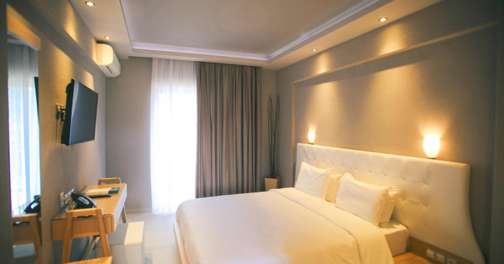 Unele camere au balcon cu vedere la grădină sau la piscină. În camere există baie cu cadă sau duș ce are în dotare foehn și articole de toaletă gratuite. Camerele confortabile de la Royal Hotel au pardoseală de gresie/ marmură, aer condiționat, Tv cu canale prin satelit și seif. Fiecare cameră oferă cană-fierbător și mașină pentru prepare cafea sau ceai. Oaspeții pot solicita serviciul de room service pentru a servi masa sau diverse băuturi. Oaspeții au acces gratuit la serviciul Wi-fi în camere. Curățenia in cameră se face zilnic. Toate camerele spațioase de la Royal Hotel au zonă de relaxare cu canapea, ceea ce oferă un plus de confort. Fiecare unitate de cazare include o chicinetă utilată cu frigider. De asemenea, este disponibilă o zonă de luat masa. Proprietatea oferă camere pentru familie cu o suprafață mai mare și un număr mai mare de paturi față de cele standard. Se pot rezerva de asemenea camere pentru nefumători.