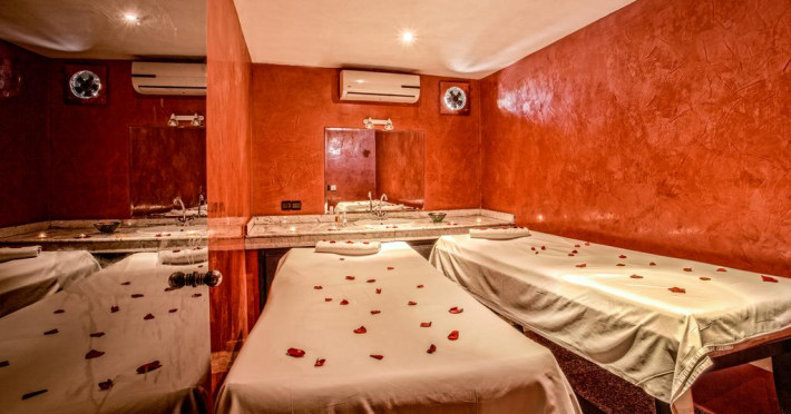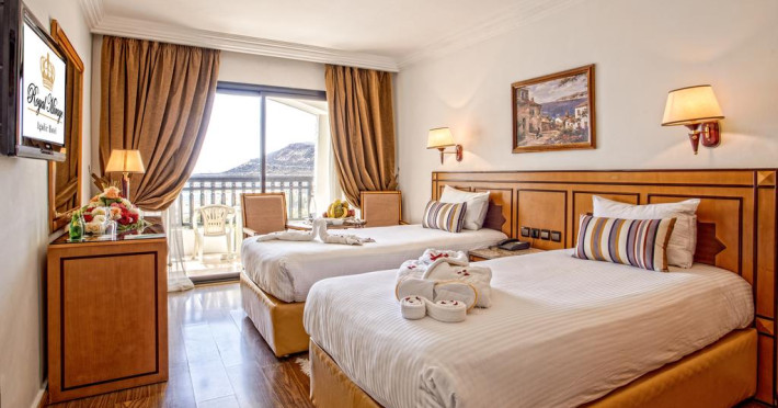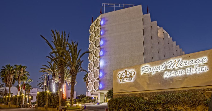 The hotel Royal Mirage Agadir has a 24h reception, a lobby bar, Wi-Fi, cash machine, parking spaces as well as a TV lounge with satellite TV. In the outdoor area of the property you will find a garden as well as a pool that is open seasonally (open all year), where sun loungers and sun umbrellas are available for free. There is also a children's pool. Furthermore, outside you can find a sun terrace. You can store your valuables in the safe, and your luggage in the hotel`s storage room. For your entertainment, the hotel offers a casino. For the young hotel guests there is a playground. There is also a laundry service. For your comfort there is a concierge service. If necessary, you can contact the medical centre (for a fee). The energy supply is 220 Volts. American Express and Visa are accepted as means of payment. Catering For the meals, there are a restaurant with terrace (Mediterranean dishes) and the pool bar. The drinks menu of the hotel includes soft drinks and wine. Sports & Leisure A minigolf course at the hotel offers fun for the family during the most beautiful time of the year. A sauna awaits you in the hotel`s own wellness area. Infants can be looked after in the hotel`s own baby club. In terms of adult entertainment, live music is presented on certain days. Additional information The hotel has a total of 155 rooms.The hotel Royal Mirage Agadir has a 24h reception, a lobby bar, Wi-Fi, cash machine, parking spaces as well as a TV lounge with satellite TV. In the outdoor area of the property you will find a garden as well as a pool that is open seasonally (open all year), where sun loungers and sun umbrellas are available for free. There is also a children's pool. Furthermore, outside you can find a sun terrace. You can store your valuables in the safe, and your luggage in the hotel`s storage room. For your entertainment, the hotel offers a casino. For the young hotel guests there is a playground. There is also a laundry service. For your comfort there is a concierge service. If necessary, you can contact the medical centre (for a fee). The energy supply is 220 Volts. American Express and Visa are accepted as means of payment. Catering For the meals, there are a restaurant with terrace (Mediterranean dishes) and the pool bar. The drinks menu of the hotel includes soft drinks and wine. Sports & Leisure A minigolf course at the hotel offers fun for the family during the most beautiful time of the year. A sauna awaits you in the hotel`s own wellness area. Infants can be looked after in the hotel`s own baby club. In terms of adult entertainment, live music is presented on certain days. Additional information The hotel has a total of 155 rooms.