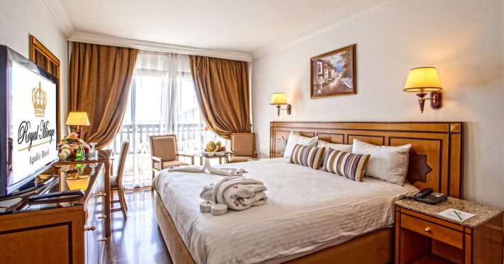 The hotel Royal Mirage Agadir has a 24h reception, a lobby bar, Wi-Fi, cash machine, parking spaces as well as a TV lounge with satellite TV. In the outdoor area of the property you will find a garden as well as a pool that is open seasonally (open all year), where sun loungers and sun umbrellas are available for free. There is also a children's pool. Furthermore, outside you can find a sun terrace. You can store your valuables in the safe, and your luggage in the hotel`s storage room. For your entertainment, the hotel offers a casino. For the young hotel guests there is a playground. There is also a laundry service. For your comfort there is a concierge service. If necessary, you can contact the medical centre (for a fee). The energy supply is 220 Volts. American Express and Visa are accepted as means of payment. Catering For the meals, there are a restaurant with terrace (Mediterranean dishes) and the pool bar. The drinks menu of the hotel includes soft drinks and wine. Sports & Leisure A minigolf course at the hotel offers fun for the family during the most beautiful time of the year. A sauna awaits you in the hotel`s own wellness area. Infants can be looked after in the hotel`s own baby club. In terms of adult entertainment, live music is presented on certain days. Additional information The hotel has a total of 155 rooms.