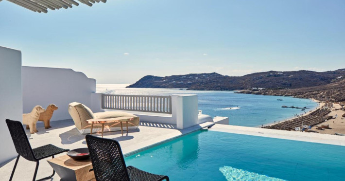 Proprietatea de lux Royal Myconian - Leading Hotels of the World, cu vedere la plaja sa privată cu nisip