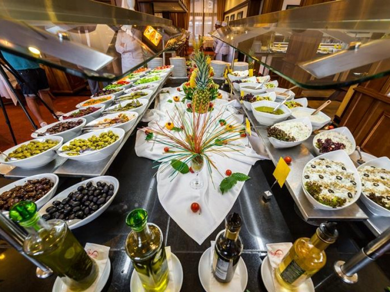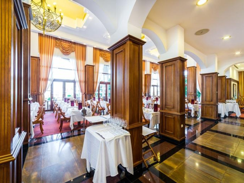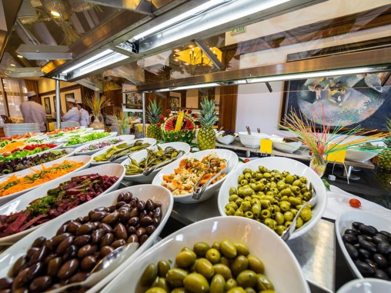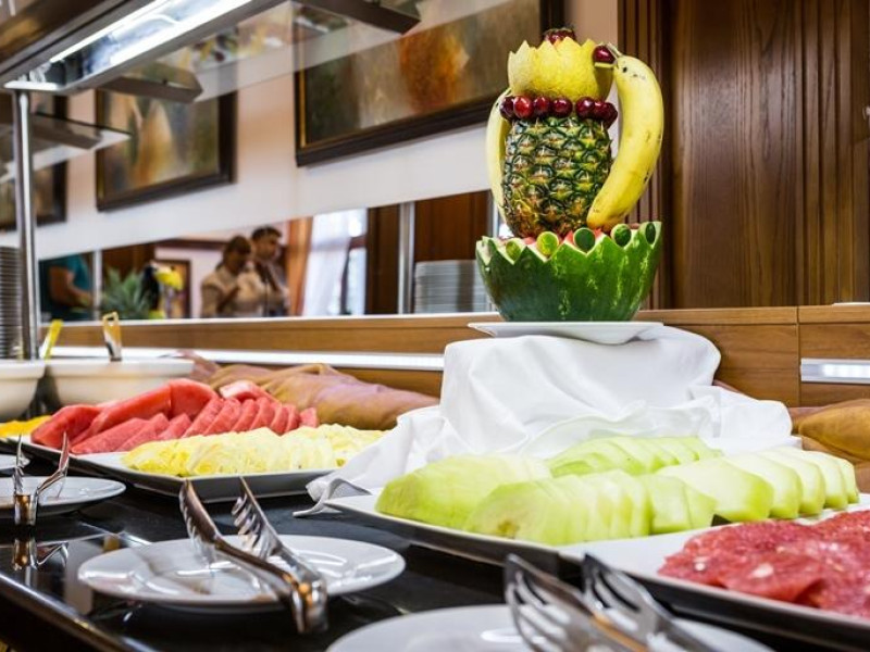 Main restaurant with terrace, themed restaurant - bookable in advance, snack bar, lobby bar, pool bar and bar salon. Outdoor pool, SPA center and indoor pool (in Helena Sands Hotel). Daily sports activities, evening shows for adults, outdoor program and live music. Pool / beach towels. Children's pool with water slide, playground, mini club, children's disco, children's buffet in the main restaurant. 3 elevators, fully equipped conference hall. Beauty / hairdressing salon, currency exchange desk, Rent-a-Car desk, laundry and dry cleaning. Free outdoor parking and underground garage - for a fee. Wi-Fi Internet access - free of charge. Formal dress is required for dinner (long trousers for the gentlemen).Main restaurant with terrace, themed restaurant - bookable in advance, snack bar, lobby bar, pool bar and bar salon. Outdoor pool, SPA center and indoor pool (in Helena Sands Hotel). Daily sports activities, evening shows for adults, outdoor program and live music. Pool / beach towels. Children's pool with water slide, playground, mini club, children's disco, children's buffet in the main restaurant. 3 elevators, fully equipped conference hall. Beauty / hairdressing salon, currency exchange desk, Rent-a-Car desk, laundry and dry cleaning. Free outdoor parking and underground garage - for a fee. Wi-Fi Internet access - free of charge. Formal dress is required for dinner (long trousers for the gentlemen).