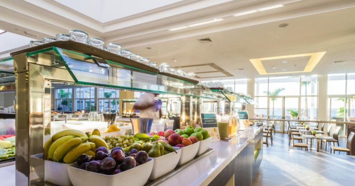 Experiența culinară este asigurată de 4 restaurante care servesc specialități internaționale și locale, iar barurile de la piscină și din lobby oferă cocktailuri rafinate. Seara, programul de entertainment include muzică live și spectacole.