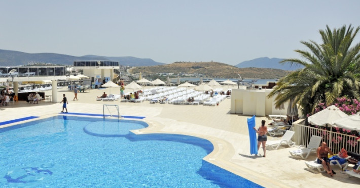 Hotelul este situat pe un deal cu vedere la golful Gumbet şi la Marea Egee, la 600 de metri de malul mării.