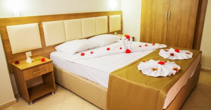Hotelul este situat pe un deal cu vedere la golful Gumbet şi la Marea Egee, la 600 de metri de malul mării. Camerele moderne au bai spaţioase (cadă sau duş) cu uscător de păr, un lounge/bedroom, un dormitor separat, telefon direct, prin satelit/cablu TV, minifrigider, aer condiţionat şi balcon sau terasă. Acest hotel a fost complet renovat în 2008 şi constă din doua clădiri vecine. Acesta cuprinde un total de 3 etaje cu 137 camere, 54 sunt camere de familie. Oaspeţii beneficiază de un vast hol cu recepţie deschisă 24 de ore, un schimb valutar şi grădini minunate. Alte facilităţi includ un bar confortabil, o sală de TV, un mic supermarket, un salon de coafură, precum şi o piscină interioară şi un restaurant în aer liber.Localizare