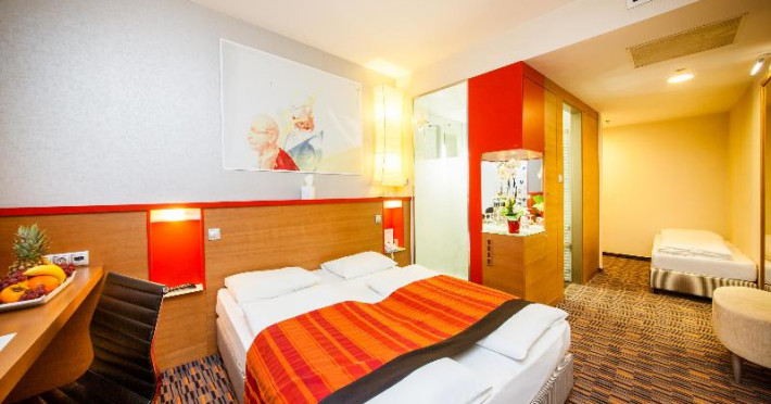 80 double rooms are located on 6 storeys and can be reached by 2 lifts. Guests are warmly welcomed by English- and German-speaking staff at the 24-hour reception desk in the lobby. Check-in/check-out service is available round the clock. Amenities include a baggage storage service, a safe and a cash machine. Wireless internet access is provided in public areas. The tour desk offers assistance with booking excursions. The hotel has a range of facilities for guests with disabilities. The hotel has wheelchair-accessible facilities. There are a number of shops as well. A garden provides extra space for rest and relaxation in the open air. Additional facilities include a TV room. Guests arriving by car can park their vehicles in the garage (for a fee) or in the car park. Further services and facilities include a babysitting service, a childcare service, a car hire service, medical assistance, a transfer service, room service, a laundry service, a hairdresser, a coin-operated laundry and a hotel shuttle bus. A bicycle hire service provides all the necessary equipment for exploring the surrounding area. The business centre is on hand for guests business requirements and provides a fax machine.Datorita dinamicitatii domeniului disponibilitatea ofertelor se modifica de la un moment la altul. De aceea ofertele sunt valabile in limita locurilor disponibile. Agentia nu este responsabila pentru eventualele neconcordante care pot aparea intre informatiile privind tarifele si alte detalii din site si informatiile primite in agentie. In aceste cazuri vor avea prioritate, intotdeauna, informatiile primite in agentie.
