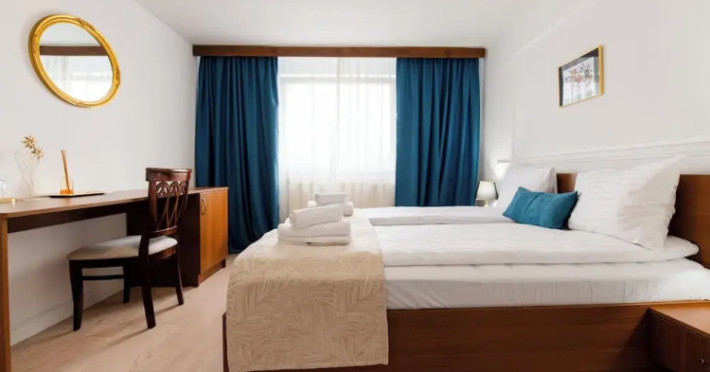 A great hotel to have a nice rest before long walks around the city. Hotel Hotel Royal Plaza is located in Timisoara. This hotel is located 2 km from the city center.A great hotel to have a nice rest before long walks around the city. Hotel Hotel Royal Plaza is located in Timisoara. This hotel is located 2 km from the city center.Spend an evening in a nice atmosphere of the bar. Its time to have a nice meal! Stop by the restaurant. Want to be always on-line? Wi-Fi is available. If you travel by car, theres a free parking zone.If you travel by car, theres a parking zone. For participants of business meetings, there is a conference hall and meeting and presentation facilities. Want to have an excursion? Consult the tour assistance desk of the hotel. For the free movement around the city, the hotel offers a transfer for you.Accessible for guests with disabilities: the elevator helps them to go to the highest floors. At the guests disposal, theres also a laundry, dry cleaning, ironing, car rental and a safe-deposit box. The staff of the hotel will be happy to talk to you in English, Italian and French.Spend an evening in a nice atmosphere of the bar. Its time to have a nice meal! Stop by the restaurant. Want to be always on-line? Wi-Fi is available. If you travel by car, theres a free parking zone.If you travel by car, theres a parking zone. For participants of business meetings, there is a conference hall and meeting and presentation facilities. Want to have an excursion? Consult the tour assistance desk of the hotel. For the free movement around the city, the hotel offers a transfer for you.Accessible for guests with disabilities: the elevator helps them to go to the highest floors. At the guests disposal, theres also a laundry, dry cleaning, ironing, car rental and a safe-deposit box. The staff of the hotel will be happy to talk to you in English, Italian and French.Heres what youll find in the room to have a rest after a long day: a shower, a TV and a mini-bar. Please note that the listed services may not be available in all the rooms.Heres what youll find in the room to have a rest after a long day: a shower, a TV and a mini-bar. Please note that the listed services may not be available in all the rooms..1 EUR not included 30 per room per stay.EUR airport not included 35 one way FEES The following fees and deposits are charged by the property at time of service, check-in, or check-out. * A pet fee will be charged The above list may not be comprehensive. Fees and deposits may not include tax and are subject to change.Datorita dinamicitatii domeniului disponibilitatea ofertelor se modifica de la un moment la altul. De aceea ofertele sunt valabile in limita locurilor disponibile. Agentia nu este responsabila pentru eventualele neconcordante care pot aparea intre informatiile privind tarifele si alte detalii din site si informatiile primite in agentie. In aceste cazuri vor avea prioritate, intotdeauna, informatiile primite in agentie.