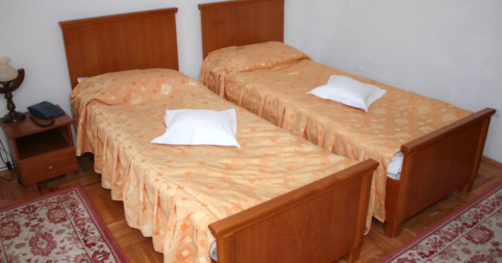 Elegant mobilat si dotat, hotelul pune la dispozitie 9 camere duble, 6 camere triple si 12 apartamente, dintre care 2 de categoria economic (3 pax), 7 standard si 3 de lux dotate cu jacuzzi, dispuse in doua corpuri pe 4 nivele + mansarda, toate dotate cu televiziune prin cablu, frigider, telefon, internet WI-FI.