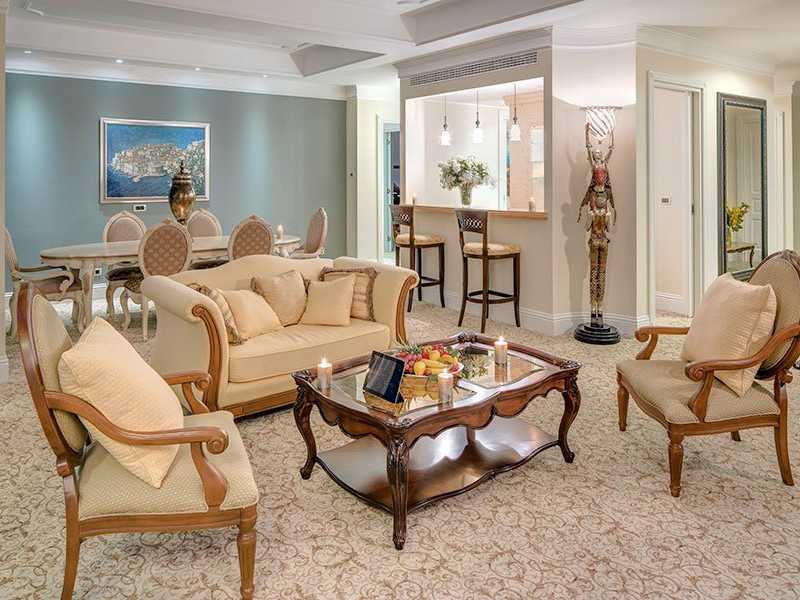 Descriere: Royal Princess combina luxul atemporal si o locatie de prim rang care stabileste decorul pentru o sedere spectaculoasa pentru oricine. Situat in zona Golfului Lapad, aceasta proprietate de lux ofera intimitate fata de agitatia Vechiului Oras Dubrovnik, vederi directe spre mare si lux. Ofera o vasta gama de facilitati potrivite atat pentru cupluri in cautare de romantism, cat si pentru familii in cautare de aventura. Relaxati-va in spa & wellness, sau dati o sansa aromelor mediteraneene distincte la unul dintre cele trei restaurante a la carte.Localizare: Situat chiar langa malul marii, in Lapad, inconjurat de o padure de pini, Hotelul Royal Princess ofera vedere frumoasa la mare. Centrul istoric al orasului Dubrovnik, cu faimoasele sale obiective, se afla la 5 km de Princess. Oaspetii se pot bucura de o plimbare de-a lungul promenadei Stradun sau de o plimbare cu telecabina si pot admira vederea panoramica la oras. O statie de autobuz local poate fi gasita chiar in fata hotelului si la fiecare 15 minute un autobuz duce turistii in centrul orasului Dubrovnik.