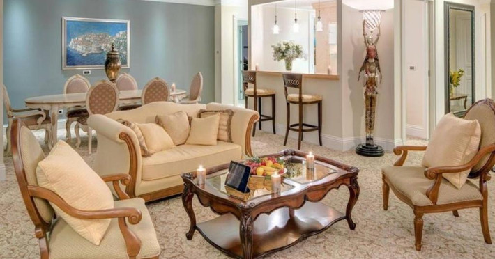 Hotelul Royal Princess oferă o spectaculoasa vedere la mare, deoarece este situat chiar lângă litoral, în peninsula Lapad. Are diverse restaurante à la carte, cu terase mari avand vedere la Marea Adriatică, baruri și pizzerie. În hotelul Royal Princess există 2 piscine și o baie de aburi. Suitele cu aer condiționat sunt decorate luxos și includ balcoane, televizoare LCD și aparat de cafea. Baia este dotată cu duș sau cadă și articole de toaletă gratuite. Acces gratuit la WIFI este oferit în toate camerele și zonele publice. Orașul vechi Dubrovnik, cu reperele sale celebre, este la 5 km de Princess. Oaspeții se pot bucura de o plimbare de-a lungul promenadei Stradun sau de o plimbare cu o telecabină care vă duce la Srđ și să admire vederile panoramice ale orașului.Localizare
