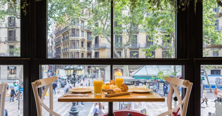 Acesta oferă un mic dejun tip bufet cu diverse produse regionale și produse de patiserie de casă in restaurantul La Poma, cu vedere impresionantă la Las Ramblas, unde puteți salva și preparate mediteraneene.
