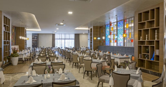 Hotelul are un restaurant luxos la care puteți degusta cele mai aparte preparate internaționale și locale, dar și 8 a la carte (italian, oriental, turcesc, steak, fructe de mare, sushi, mexican și tapas – contra cost), 9 baruri, o piscină exterioară cu tobogane și una interioară, piscina pentru adulti si pentru copii cu tobogane, mini club (4-12 ani), programde de animatie pentru adulti si pentru copii.
