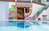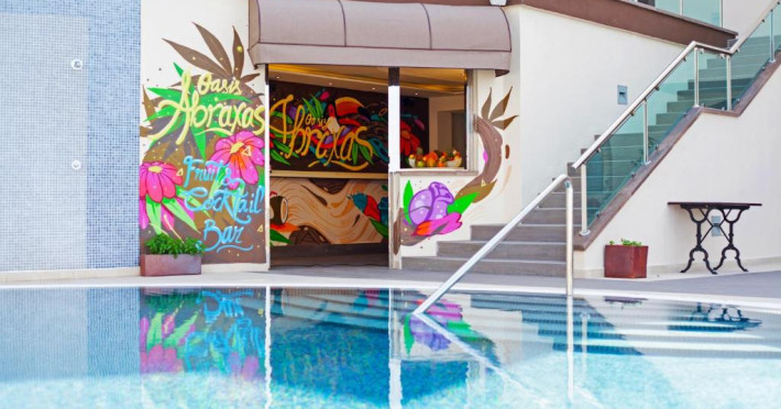 Langă piscină se află barul Oasis Abraxas, iar complexul are, de asemenea, o serie de alte baruri cu divertisment live, precum și restaurantul bufet Regency și restaurantul à la carte Aqua.
