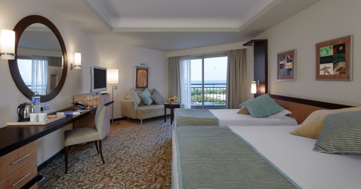 Hotelul are un total de 467 camere, 408 camere superioare, 20 junior suite, 40 camere douplex family si 2 apartamente prezidentiale. Toate camerele au balcon, cu vedere spre mare sau spre uscat, mocheta, detector de fum, baie privata cu cada, uscator de par, telefon direct, aer conditionat, mini-bar (bauturi racoritoare si bere), seif, internet (contra cost), TV satelit si muzica.