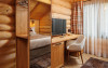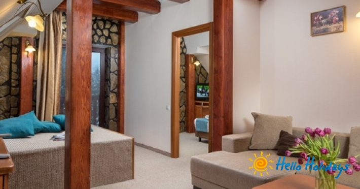 Camera dubla superioara este formata dintr-un pat dublu matrimonial queen size si o canapea extensibila, fiind potrivita pentru o familie cu doi copii. De asemena, in componenat intra si o baie proprie dotata cu dus, uscator de par si articole de baie.