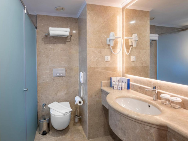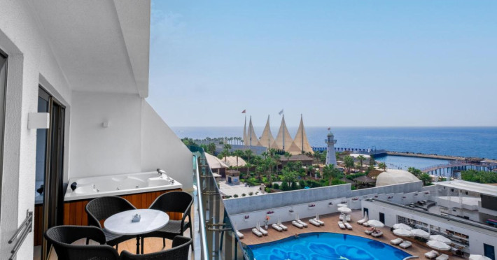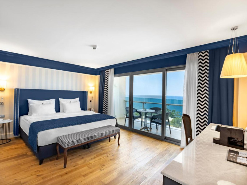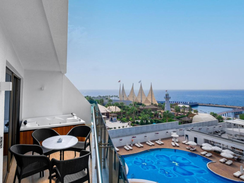 Locatie: Hotelul este situate in Alanya. Facilitati hotel: Piscine: Piscina exterioara si interioara, Piscina de realaxare Aquapark, Restaurant: Restaurantul principal tip buffet, 2 Restaurant A’la Carte, Patiserie cafenea Plaja si ponton: Plaja Sandy Beach are 100 de metrii, iar pontonul este din piatra. Sporturi: Step Tenis Baschet Aerobic Sală de fitness Arcuri Zumba Pilates Canoa Volei pe plajă Șah Yoga Stretchinh Water Ball (Joc cu minge în apă) Aqua Gym (Gimnastică acvatică) Hotelul intretine activitati pentru copii: mini-cine, kids club, loc de joaca, kids aquapark, treasure hunt, pictura pe fata. Spa & Wellness: Piscina interioara Jacuzzi Hamam Sauna Camera cu zapada Camera cu sare Masaj – extra cost Tratamente faciale si corporale– extra cost Manechiura si coafor – extra cost Facilitate camera: TV Seif Minibar Set de ceai și cafea Aparat de aer condiționat Cheie electronică Masă pentru machiaj Oglindă pentru machiaj Halat de baie Șlapi de baie Telefon Uscător de păr Detector de fum Set VIP pentru baieInfo
