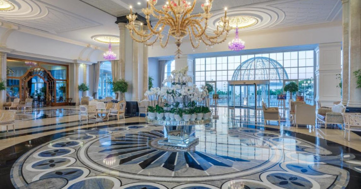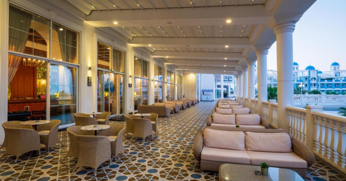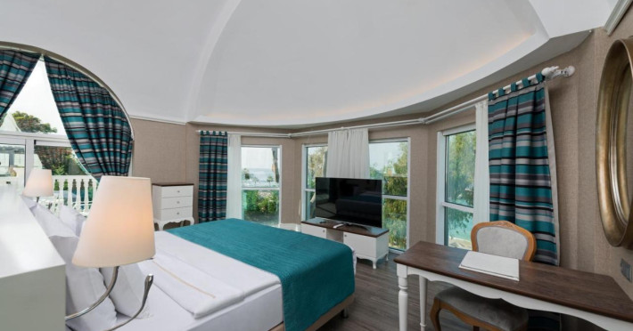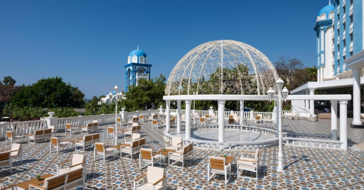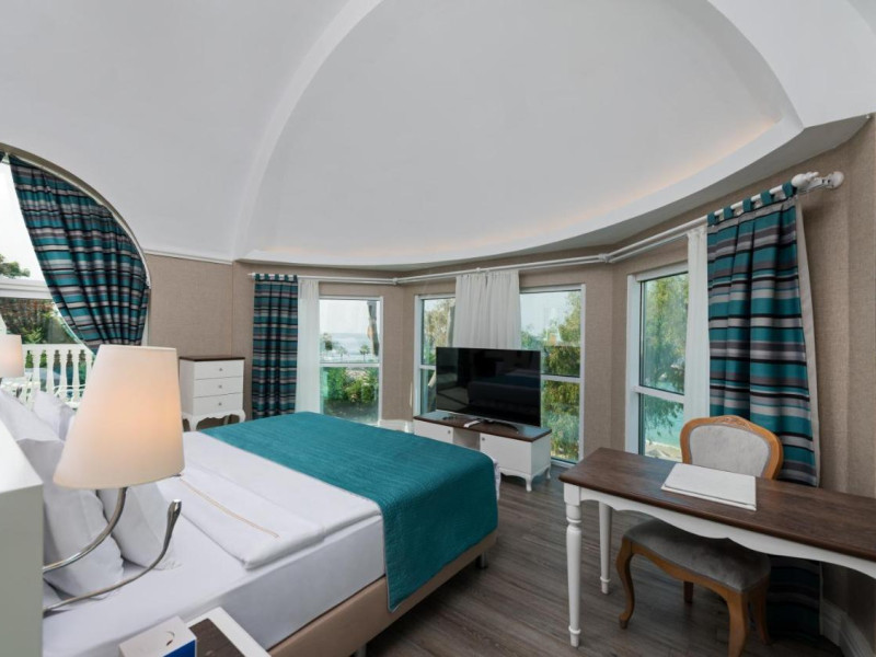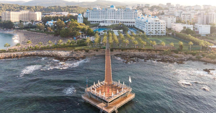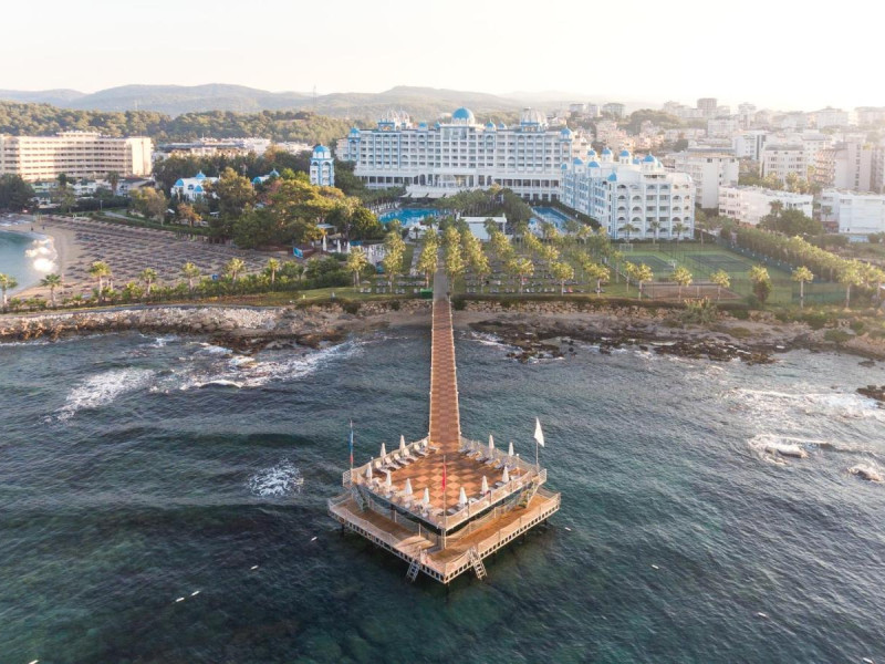 Locatie: Distanța până la Alanya: 22 km, Side - Manavgat: 35 km, Antalya: 100 km Aeroportul Antalya (AYT): 105 km, Gazipaşa (GZP): 70 km Facilitate hotel: Plaja si piscine: Plaja Pearl Bay si penton cu un total de 620 de locuri si 13 pavilioane de plaja. 2 piscine de adulti, Aquapark cu 4 tobogane, piscina interioara, si 2 piscine de copii Restaurante: Restaurant principal tip buffet, Restaurant A’la Carte pentru snack-uri si cina Patiserie, si Gozleme Baruri: Cetrus Bar (Lobby) Flexilis Bar Papaya Beach Bar Ficus Show Center 24 Hours The Club (Disco) Facilitate camera; 40" TV Cheie electronică Șlapi Pat pentru bebeluși Seif Ventilator de tavan Telefon Perne pentru bebeluși Minibar Măsuță de lucru Uscător de păr Lenjeria de pat pentru bebeluși, pătură Set de ceai și cafea Oglindă pentru machiaj Detector de fum Aparat de aer condiționat Wi-Fi Baie Dormitor Balcon Baie pentru bebeluși și olităLocalizare
