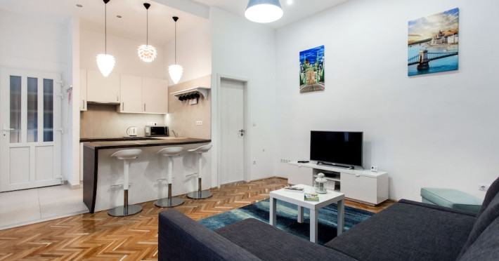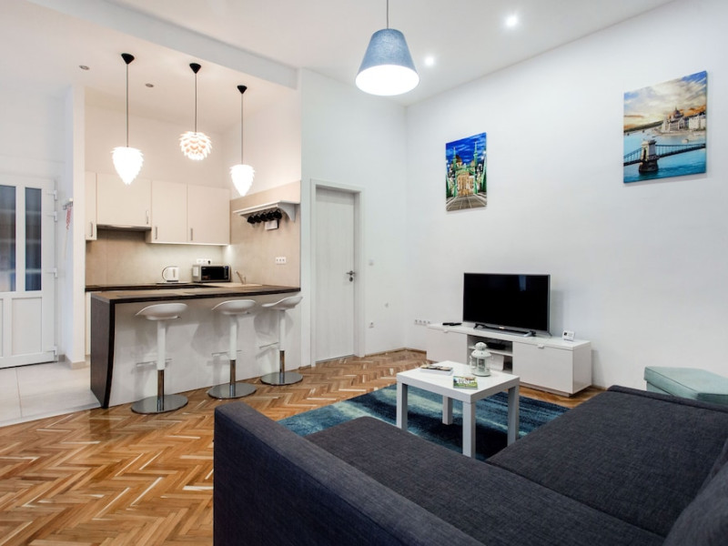 Hotel characteristics: ; 1 rooms Location: A great option for family vacation: apartment «Rumbach 7 Apartment» is located in Budapest. This apartment is located nearby from the city center. You can take a walk and explore the neighbourhood area of the apartment. Places nearby: Dohany Street Synagogue, Astoria and Hungarian State Opera House At the apartment: Free Wi-Fi is available on the territory. Ask for more information when checking in. You will find these entertainment amenities on the premises: a barbeque area. The tour assistance desk of the apartment will help you book an excursion. If you want to make your journey even more comfortable, you can order a transfer; Additional services that the apartment offers to its guests: a laundry, dry cleaning and an ATMDatorita dinamicitatii domeniului disponibilitatea ofertelor se modifica de la un moment la altul. De aceea ofertele sunt valabile in limita locurilor disponibile. Agentia nu este responsabila pentru eventualele neconcordante care pot aparea intre informatiile privind tarifele si alte detalii din site si informatiile primite in agentie. In aceste cazuri vor avea prioritate, intotdeauna, informatiile primite in agentie.
