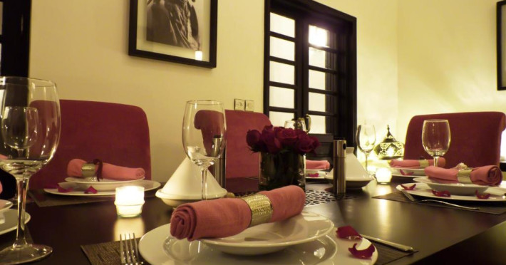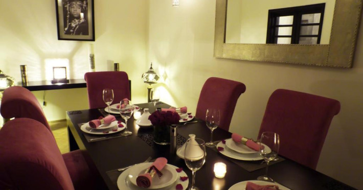 Micul dejun continental este oferit in fiecare dimineată. Alte mese, care includ specialități marocane tradiționale, pot fi savurate langă fantana din curte sau pe terasa de pe acoperiș.