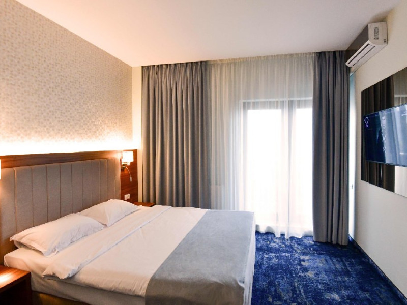 Camera dubla, cu o suprafata de 20 mp, detine un pat dublu extra-large, balcon cu vedere la curtea interioara, baie cu dus, articole de toaleta, TV, AC, internet, minibar, seif, uscator de par. Poate acomoda 2 adulti sau 2 adulti +1 copil ( 0-11.99 ani)