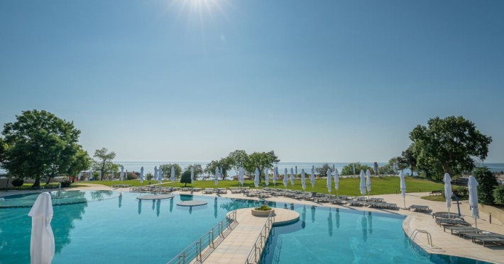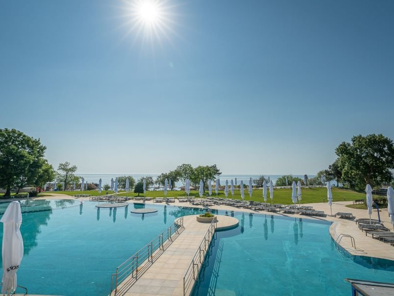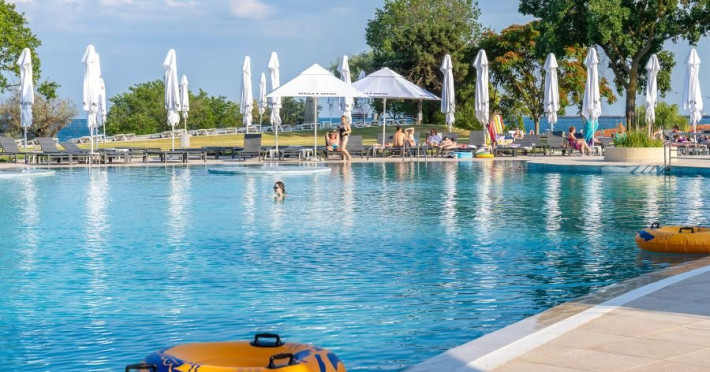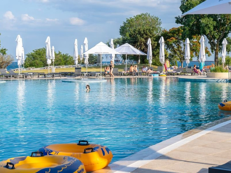 Va puteti relaxa pe sezlongurile confortabile de pe marginea piscinei sau puteti profita de plaja privata care este disponibila la iesirea din curtea resortului.