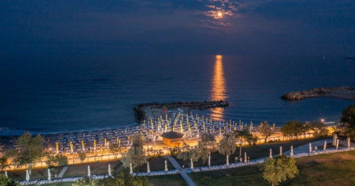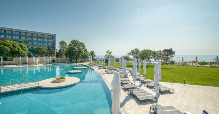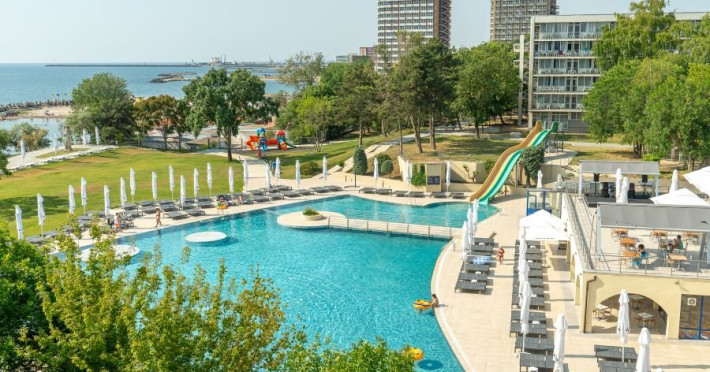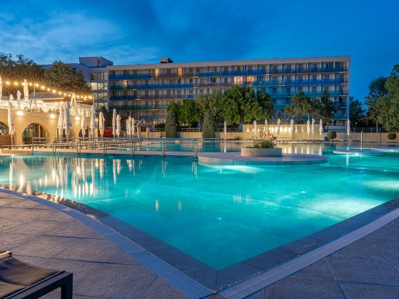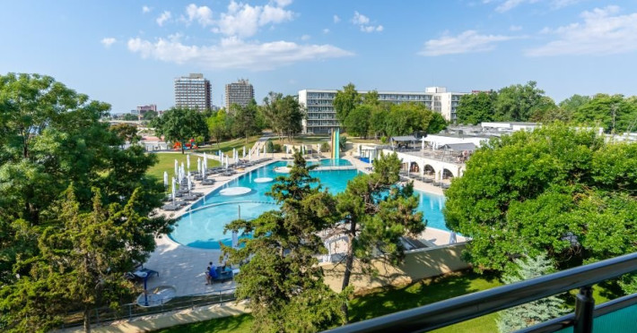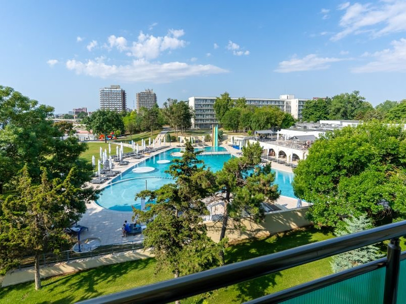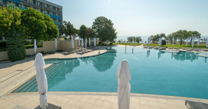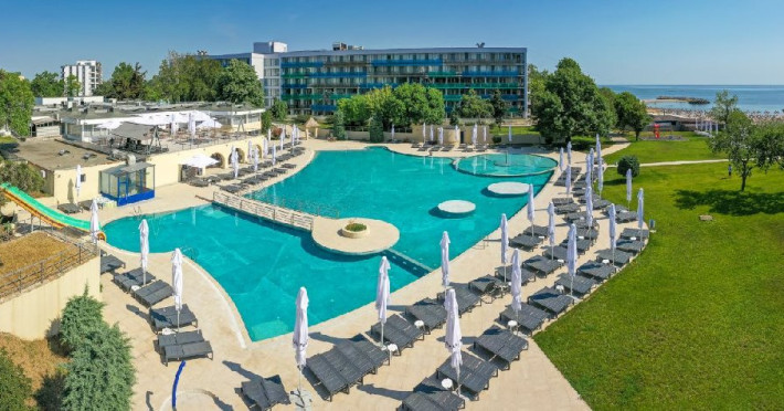 SAFIR BLUE RESORT - HOTEL CLEOPATRA este situat in statiunea Saturn, pozitionat perpendicular pe tarmul marii, in apropiere de Gradina de Vara.