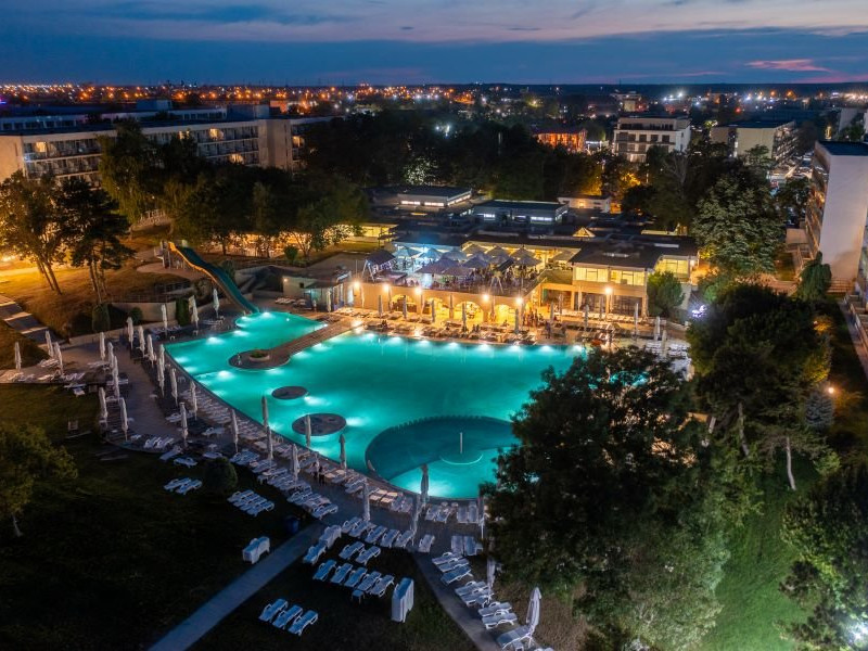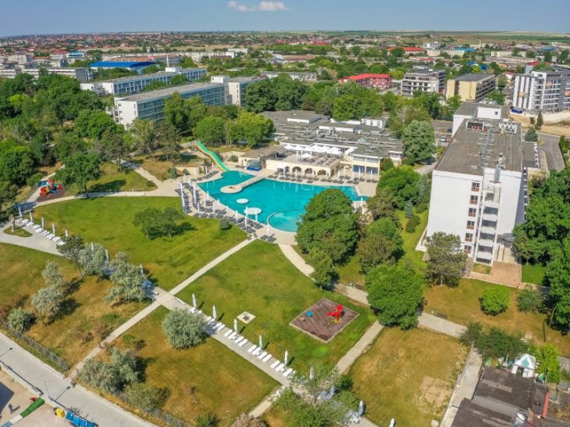 Piscina exterioara este una dintre cele mai frumoase din zona, avand o suprafata de 1500 mp si un design modern.