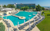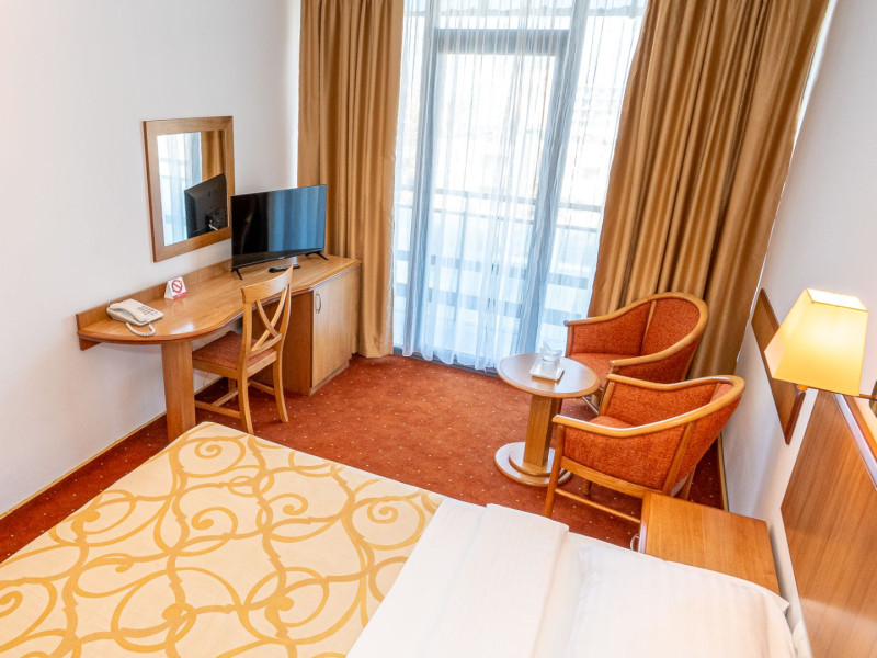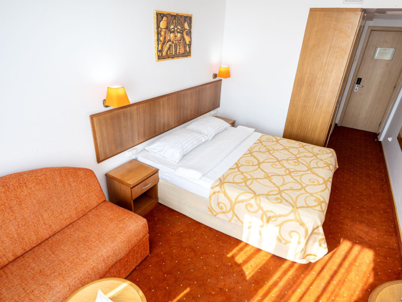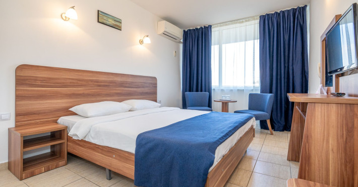 Cleopatra Resort este alcatuit din 3 hoteluri â Cleopatra 3* (277 camere), Narcis 3* (320 camere) si Semiramis 3* (185 camere). Cele 3 hoteluri dispun de o curte comuna cu o suprafata de peste 10.000 mp, o piscina generoasa de peste 1.500 mp, precum si de o plaja privata de peste 5.000 mp. Facilitati resort: restaurant, beach bar, kids club si kids park (loc de joaca pentru copii interior si doua locuri de joaca in aer liber), parcare. Facilitati camere: - Camera dubla/twin Hotel Cleopatra: 15 mp, un pat matrimonial (160/200cm) sau twin (2x80/200cm), acces in camera pe baza de cartela, AC, TV, telefon, seif, baie cu cabina de dus, uscator de par, cosmetice hoteliere, balcon cu mobilier de terasa. - Camera dubla king Hotel Cleopatra: 15 mp, pat matrimonial (160/200cm) si o canapea extensibila pentru o persoana, acces in camera pe baza de cartela, AC, TV, telefon, seif, baie cu cabina de dus, uscator de par, cosmetice hoteliere, balcon cu mobilier de terasa. - Apartament Hotel Cleopatra: 25 mp, compus din dormitor cu pat matrimonial si living cu canapea extensibila, o baie, acces in camera pe baza de cartela, AC, TV, telefon, seif, baie cu cabina de dus, uscator de par, cosmetice hoteliere, balcon cu mobilier de terasa. - Camera dubla matrimoniala/twin Hotel Narcis: 14 mp, dispun de pat matrimonial (160/200cm) sau twin (2x80/200cm). Camerele de la parter NU au balcon. Acces in camera cu cheie mecanica, AC, TV, baie cu cabina de dus, cosmetice hoteliere, balcon cu mobilier de terasa pentru camerele situate la etaj. - Camera dubla matrimoniala/twin Hotel Semiramis: 14 mp, dispun de pat matrimonial (160/200cm) sau twin (2x80/200cm) si sunt situate la etaj. Acces in camera cu cheie mecanica, AC, TV, baie cu cabina de dus, cosmetice hoteliere, balcon cu mobilier de terasa.Datorita dinamicitatii domeniului disponibilitatea ofertelor se modifica de la un moment la altul. De aceea ofertele sunt valabile in limita locurilor disponibile. Agentia nu este responsabila pentru eventualele neconcordante care pot aparea intre informatiile privind tarifele si alte detalii din site si informatiile primite in agentie. In aceste cazuri vor avea prioritate, intotdeauna, informatiile primite in agentie.