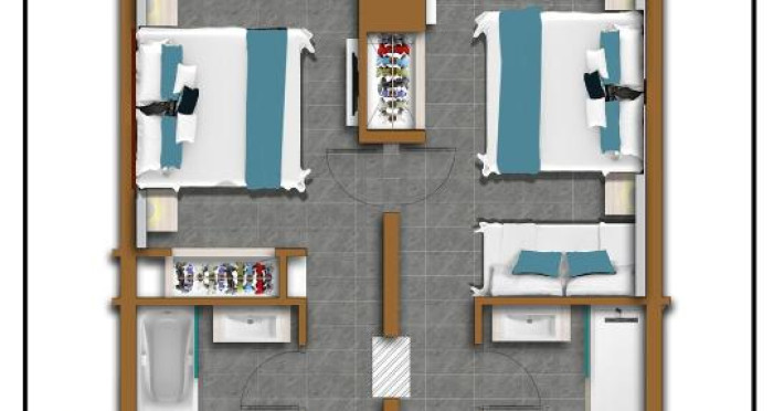 Camerele de la Sahara Beach au baie privată. Acestea oferă vedere partială la mare si la grădina cu flori a hotelului.