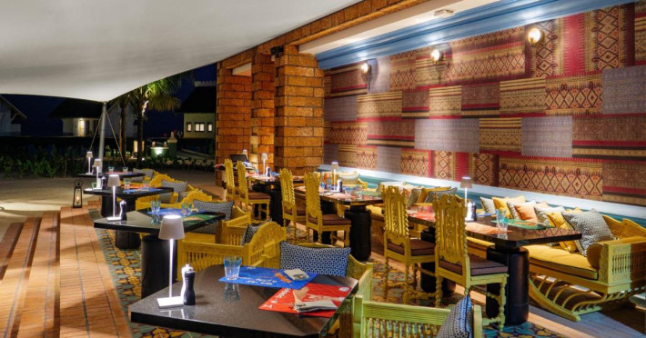 Oaspeții de la SAii Lagoon Maldives, Curio Collection by Hilton au la dispoziție o varietate de opțiuni de luat masa, care includ restaurante specializate în preparate mediteraneene cu fructe de mare și thailandeze, precum și o cafenea. De asemenea, la câțiva pași de complex se află Café del Mar și Hard Rock Café. În fiecare dimineață oaspeții au la dispoziție un mic dejun tip bufet.