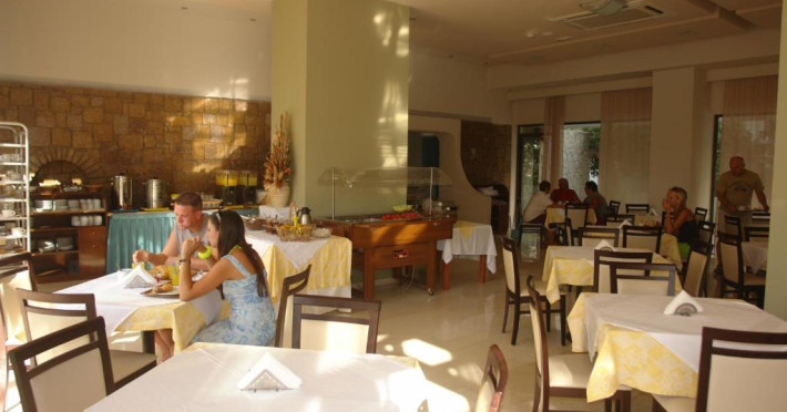 Saint Constantine pune la dispoziția oaspeților un restaurant care servește mâncare în stil bufet. Masa poate fi servită atât în interior, cît si în aer liber, pe terasă, în funcție de vreme. Oaspeţii pot avea diverse băuturi răcoritoare sau alcoolice la bar. Oaspeţii îşi pot pregăti micul dejun şi alte mese şi le pot savura chiar pe balcon.