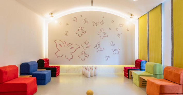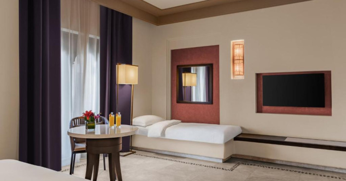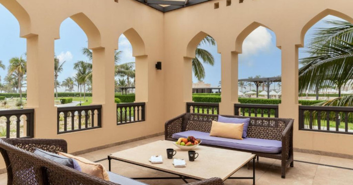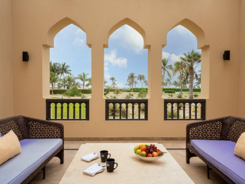 Acest hotel are o arhitectură elegantă de inspirație Oman. Clădirea principală este inconjurată de o serie de grupuri de clădiri care oferă principalele servicii și facilități. Toate camerele au balcon sau terasă cu vedere la ocean, la canal sau la grădină. De asemenea, in camere există TV cu ecran plat, minibar, facilități de ceai și cafea și multe altele.