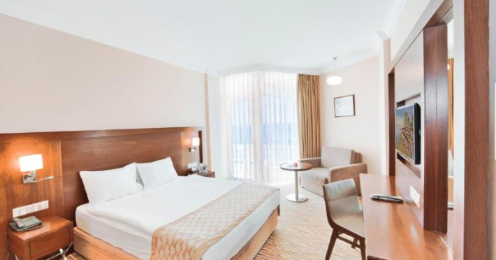 Situat pe malul plajelor istorice Salamis, cu nisipuri fine aurii și ape cristaline înconjurată de frumusețile naturii, Salamis Bay Conti Resort vă oferă o experiență de neuitat. Cu confort, calitate și servicii atente, împreună cu un design excelent, complexul vă asigură o ședere plină de rafinament. Situat pe una dintre cele mai frumoase porțiuni de plajă cu nisip auriu din Ciprul de Nord și în apropierea orașului roman preistoric Salamina, acest hotel reprezintă o alegere ideală pentru relaxare și distracție.Descriere hotel